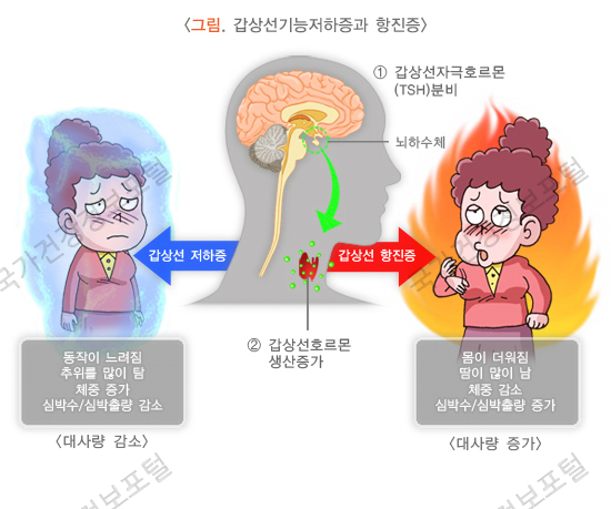 갑상선이 충분한 양의 갑상선 호르몬을 분비하지 못하여 신체 대사가 저하되는 상태를 의미합니다.