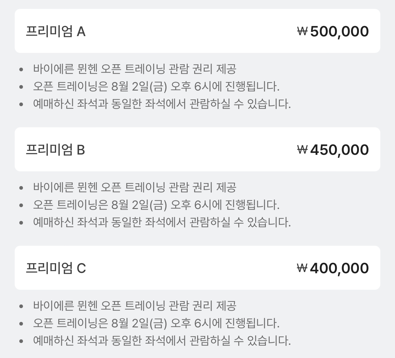 - 예매는 모든 경기 일괄 오픈