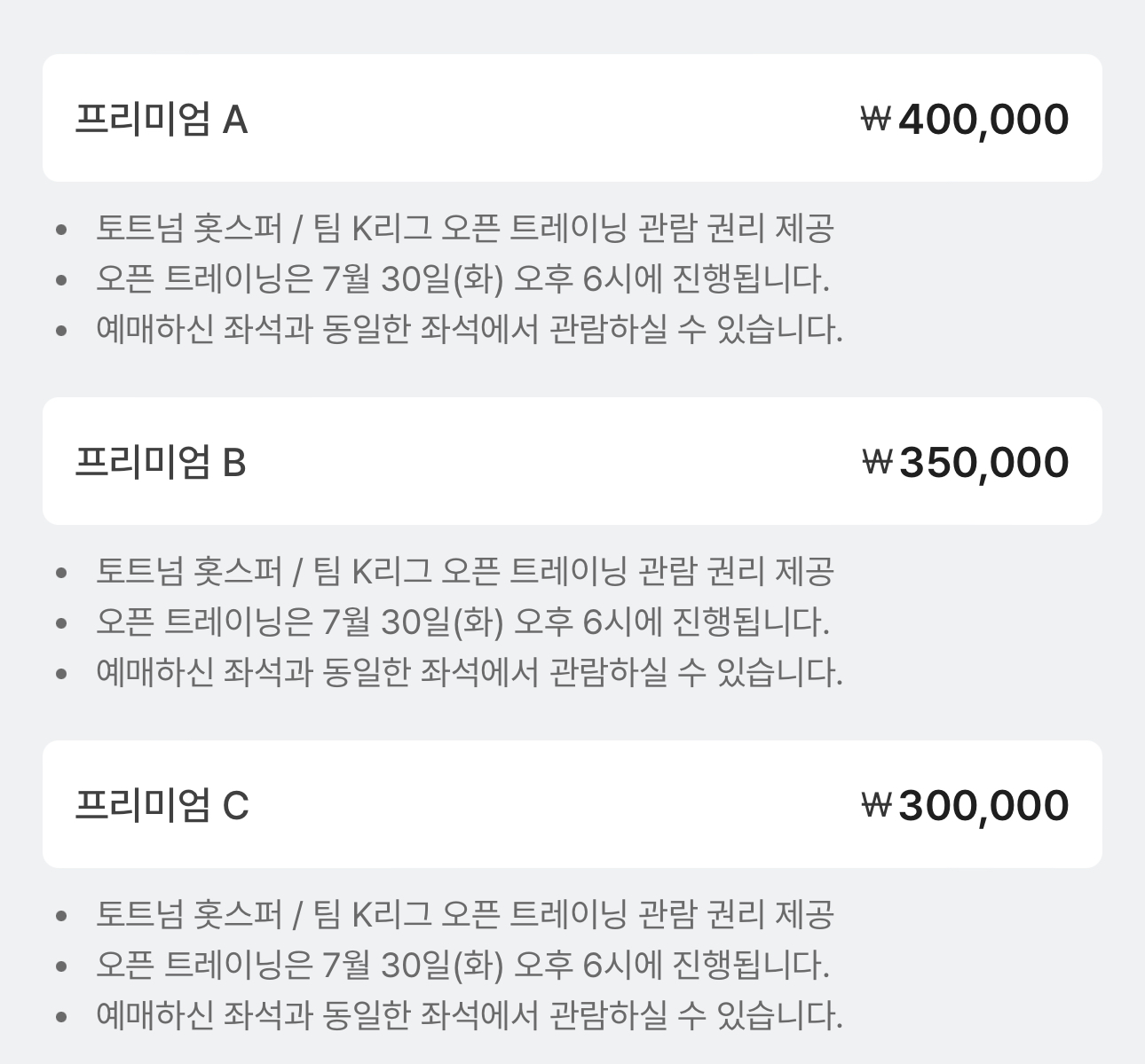 ● 경기일 2일 전 ~ 경기시작 2시간 전 : 티켓금액의 30%