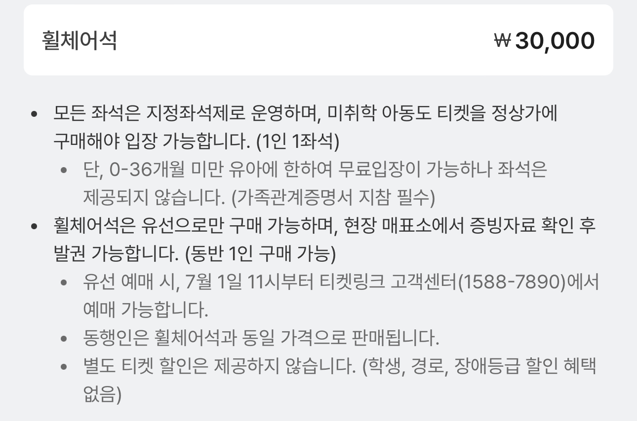 *예매 티켓은 선물하기 및 양도 불가능 합니다.